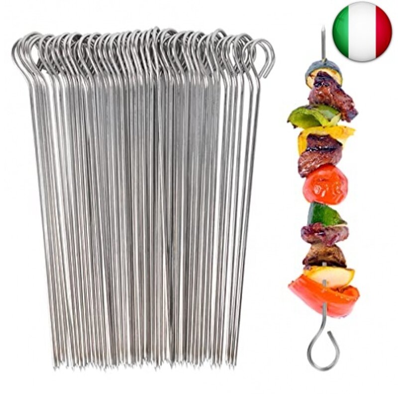 Spiedini in acciaio inox, spiedini e snack, riutilizzabili, 100 pezzi, 15cm. Questi spiedini in acciaio inox possono essere utilizzati come spiedini di carne, spiedini di verdure, spiedini di frutta, formaggio, spiedini barbecue e buffet. Ideale anche per lavori di bricolage.