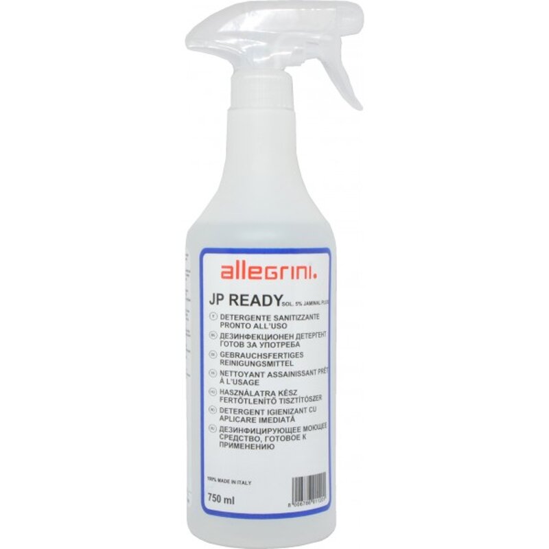 Lo spray igienizzante pronto all’uso JP Ready Allegrini garantisce una pulizia efficace e duratura su tutte le superfici, grazie alla sua formula battericida testata in laboratorio.