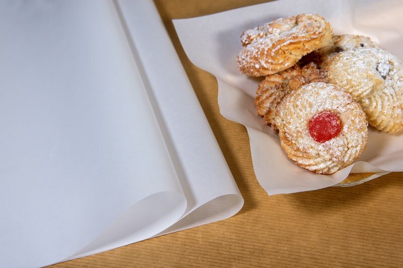 La carta pergamino è una velina semitrasparente dall’aspetto cristallino, lucida su entrambi i lati e resistente all’umidità grazie a un particolare trattamento di paraffinatura. Questo rende la carta perfetta per l’uso alimentare, perché forma una barriera protettiva contro olii e grassi.
