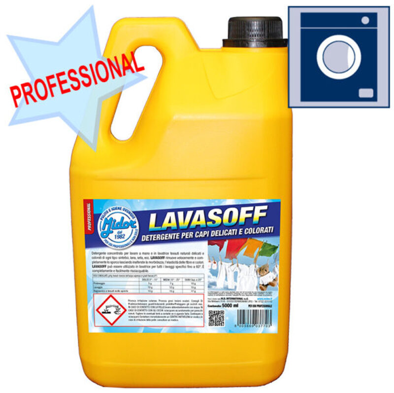 Il prodotto genera poca schiuma ed è consigliabile utilizzarlo fino a 60°. LAVASOFF si distingue per la capacità di mantenere un’ottima azione pulente anche alle medie e basse temperature.