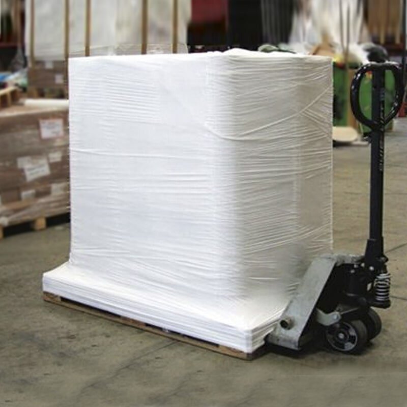 Il film estensibile è un prodotto indispensabile per la preparazione dei pallet e per il fissaggio della merce. Viene venduto in bobina ed ha caratteristiche uniche in quanto è estremamente leggero, resistente, aderisce perfettamente a qualsiasi forma di imballo, garantisce maggior isolamento dall’umidità e non nasconde il contenuto perché è trasparente, consentendo la lettura anche dei documenti di trasporto allegati alla spedizione.