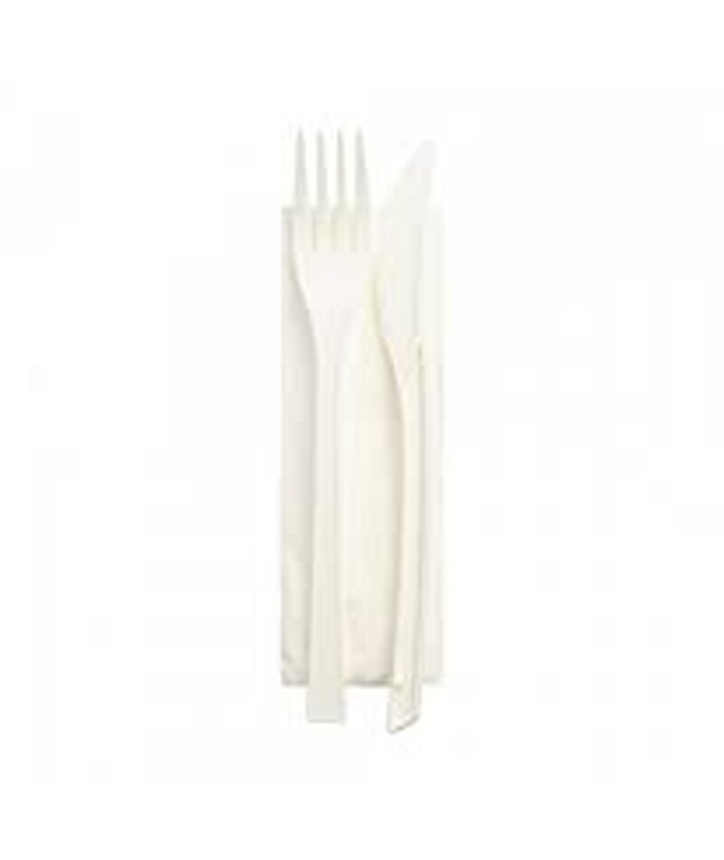 Bis posate monouso in CPLA biodegradabili, imbustati in comode confezioni contenenti ognuna una Forchetta, un Coltello e un Tovagliolo. Ogni posata ha una lunghezza di 16cm e sono ideali sia per un uso professionale che casalingo per sostituire le classiche posate.