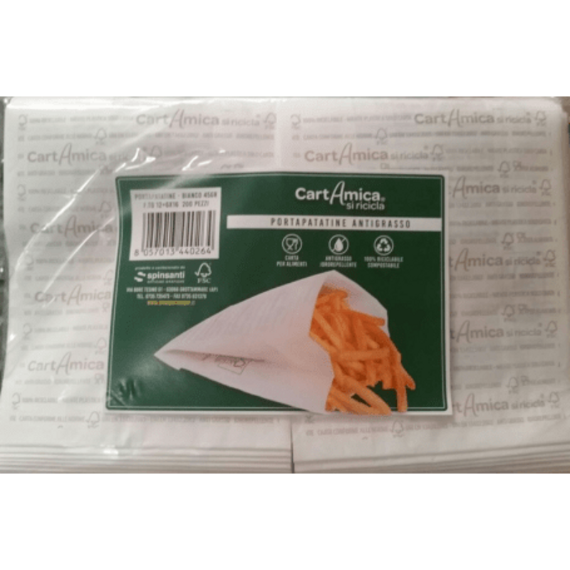 Sacchetti porta patatine, in carta per alimenti, antigrasso, idrorepellenti, 100% riciclabile, compostabile.Sacchetti per alimenti ideali per l'asporto di patatine e alimenti fritti in genere.