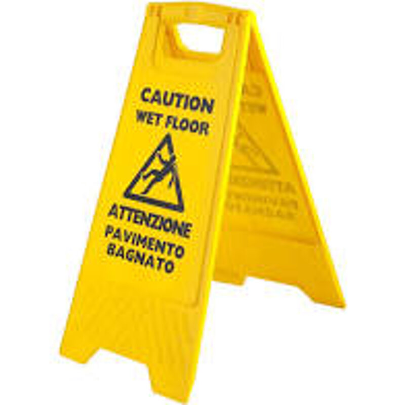 Segnale di pericolo per indicare pavimento bagnato.